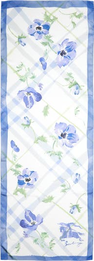 House codes collide on this fluid Italian-silk scarf, where Burberry's iconic Equestrian Knight Design pauses to pose among instantly recognizable checks and watercolor flora.