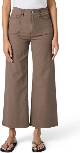 Slim through the thighs and wide through the legs, these ankle-length jeans stand out with seamed front pockets and a vintage-inspired taupe-brown hue.