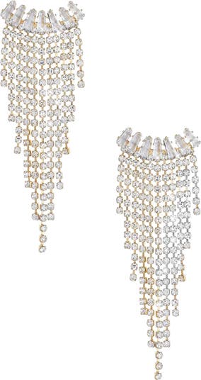 Endow night-out looks with shake and shimmer when you put on these light-catching fringe earrings lined with crystals.