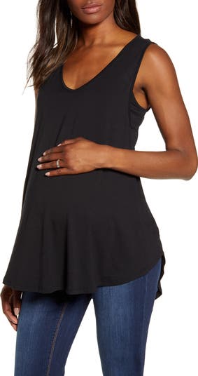 Keep cool on steamy days in this bump-friendly tank in a swingy silhouette designed with nursing panels for discreet access after baby arrives.