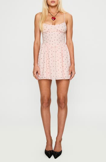 Short and sweet—that's the story of this romantic cotton dress that begins with a fitted bodice and ends with a flouncy finish.