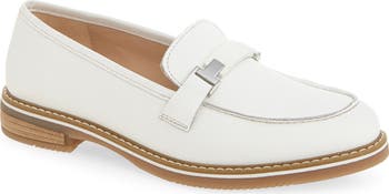 Geometric hardware at the instep enhances the timeless sophistication of this luxe leather loafer set on a cushioned, arch-supporting footbed and a flexible sole.
