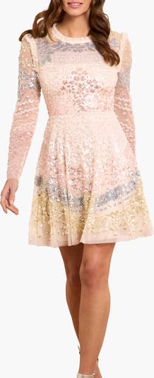 Shimmering sequin mini that skims the waist, flares into a twirl-ready pleated skirt, and promises unforgettable party moments.