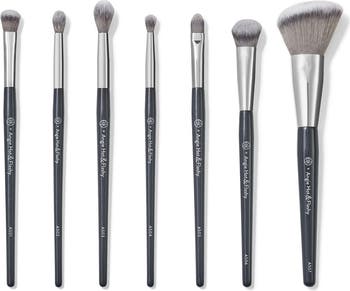 - This 7-piece brush set (2 face and 5 eye) was designed in collaboration with over-50 YouTube creator Angie Hot & Flashy. Each brush shape was specially designed with mature skin in mind. Crafted with ultra-soft, luxurious 100% cruelty-free, synthetic fibers — the fibers are gentle on mature and sensitive skin. Face Brushes: A506 Concealer brush delivers smooth, streak-free under-eyes every time. The “kitten-paw” angled shape fits perfectly under and in the corners of the eyes, making it mature and small-eye friendly and delivering an even application. A507 Angled brush is ideal for a natural application of cream or powder blush or bronzer. Eye Brushes: A501 Lid Shader: Lays down your base shadow color for any eye look. A502 Crease Shader: Defines the crease with a diffused blend. A503 Blender: Helps to seamlessly bring the look together by blending each layer. A504 Detailer: This brush's small, dense shape can be used to add dimension or smudge out the lash line. A505 Shimmer: Flat and dense — perfect for completing the look by packing on shimmer shadow, it also doubles as a lip brush.