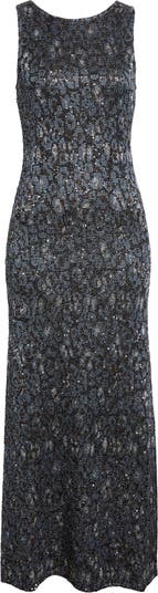 Allover clear sequins and glinting metallic threads bring signature Missoni sparkle to this sleeveless column dress in an animal-motif jacquard.