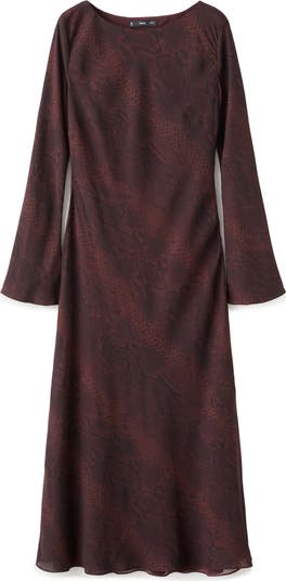 Flared sleeves frame this lightweight maxi covered in a bold animal print and finished with an easy A-line skirt.