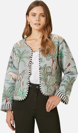 For bang on trend outerwear for the summer we love this White quilted jacket from Yumi. Made using a traditional quilting technique, from lightweight cotton, this reversible garment really is a show stopper. With a different unique print on the inside, the tags and care labels are sewn into the pockets so you can change your look easily. Pair with jeans and a T-shirt for an off duty look, or 2!