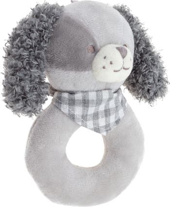 A soft ring rattle sized for little hands to grab makes a sweet gift for little ones and is machine washable in case they become your baby's favorite teething device, too.