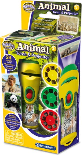 TORCH & PROJECTOR: ANIMAL TORCH - This fantastic projector torch projects amazing images of animal wildlife around your room. View images from all around the world on your walls and ceilings including giraffes, elephants, alligators, and more–a great bedtime companion to make going to sleep more fun. The torch comes with three slide discs and a total of 24 color animal photographs. Swap and change the slides in the torch easily then rotate the disc round to view the fantastic color images which project up to one meter wide. Images are easily focused by turning the lens head. This product can be used as a normal torch without the slides in place and is great for keeping on bedside tables to give comfort to children during the night. The torch measures 12cm long and 4cm in diameter. A perfect, fun yet educational, gift for boys and girls who are interested in Animals. Now that kids grow out of toys earlier and earlier, torches will appeal to kids into their tween and teen years. Ideal for pajama parties and sleepovers. Remove the tag to activate. Secure battery cover. If the disc is dusty, clean it with a soft cloth. INCLUDES: 2 AAA Batteries.