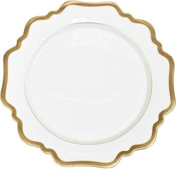 Add a touch of elegance to your dining experience with Anna's Palette, antique shaped dinnerware. Crafted from porcelain in stunning shapes, this dinnerware features a delicate scalloped gold edge for a sophisticated touch. Mix and match with other antique shaped dinnerware from Anna's Palette to create a unique and stylish table setting.