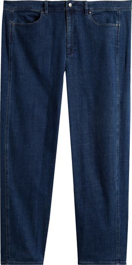 Refresh your essentials with high-waisted lantern jeans cut in a straight-leg silhouette from comfortable stretch denim.