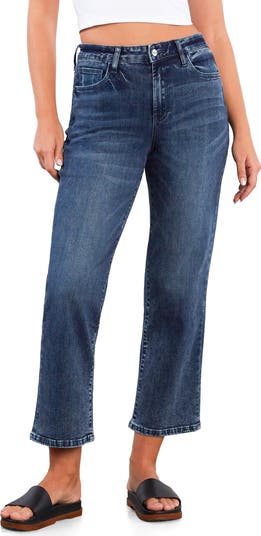 Keep it classic in these easygoing, ankle-length straight-leg jeans made from lightweight stretch denim aged with tacking and whiskering.