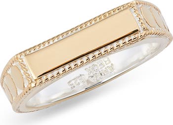 This signet ring is reimagined in a slimmer design with a smooth bar setting and tapered band textured with hand-cut and hand-layered dots.