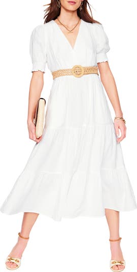 Double-layer cotton gauze feels so soft next to your skin in this fit-and-flare midi dress animated with swishy tiers.