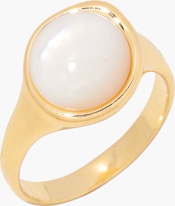 A freshwater pearl glows from the center of this charming 14-karat gold-plated ring and adds a chic touch to any ring stack.