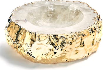 This crystal quartz bowl that is the perfect special place to store your most prized treasures gets its gleaming luster from 24-karat gold plating.