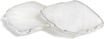 Designed to last a lifetime, these semi-precious stone coasters are accented by shiny metallic edging.