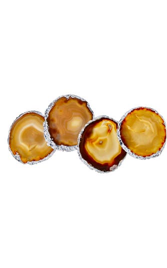 A halo of fine polished silver rings these coasters made from delicate slices of agate that's believed to promote a sense calmness in your home.