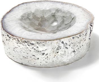 Gorgeous silver plating highlights the natural texture of this lovely quartz bowl that's perfect for storing small treasures.