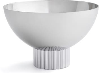 Serve or display delicious nuts and dried fruits in this elevated stainless steel bowl featuring a sleek, modern design inspired by the graceful lines of nature.