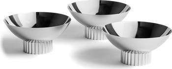 Gleaming stainless steel becomes a work of art with this trio of bowls that have a base reminiscent of the calming movements found in nature.