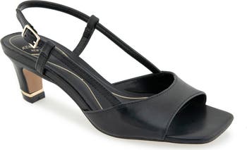 - Adjustable slingback strap with buckle closure