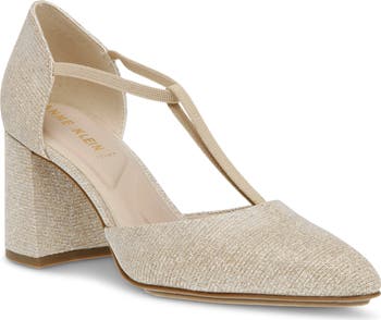 A faille upper adds subtle texture to a sleek pointy-toe pump that's elevated by a wrapped block heel.