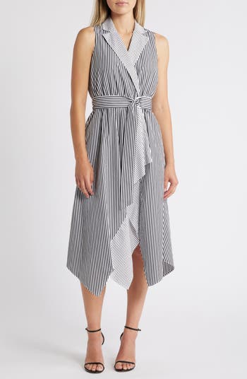 A drapey handkerchief hem gives graceful movement to this work-to-play midi shaped by a polished wrapped silhouette.