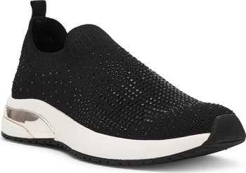 Sparkling crystals put a glam twist on the sporty silhouette of this lightweight knit sneaker.