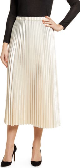 Soft accordion pleats lend graceful movement to this day-to-night midi skirt.