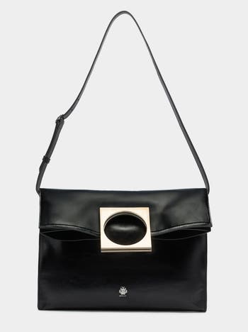 A bold metal handle characterizes this Anni foldable tote in black leather. A palladium-hue foil Crest sits to the front, a simple yet timeless signifier of Bally heritage.