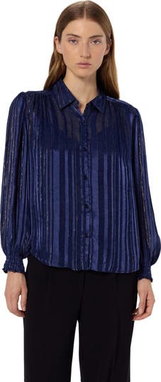 Soft blouse with satin and sheer stripes and a touch of metallic-tone lurex, perfect for day to evening style.