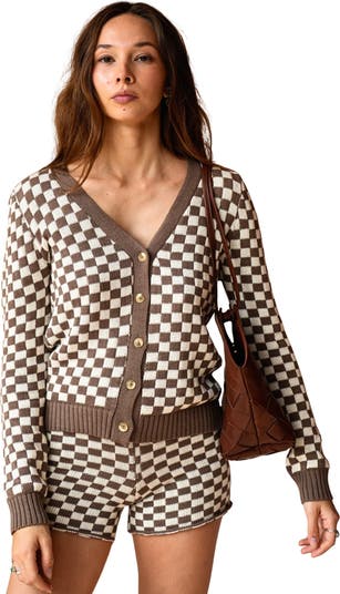 A modern take on a classic, this checked knit cardigan is crafted from 100 cotton yarn, offering a soft, textured feel and a relaxed silhouette. The bold check pattern adds stylish dimension, making it an easy layering piece for both casual and polished looks.