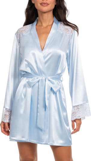 Give yourself a hug in the supple satin of this lace-trimmed wrap that's lightweight and flowy.