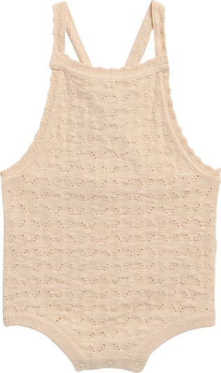 They'll be looking precious in this pointelle romper made of organic cotton and detailed with scalloped edges.