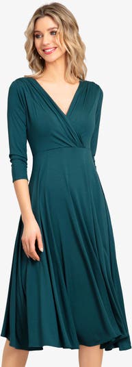 Designed to flatter at the waist with a gathered crossover-neckline and fit-and-flare skirt in soft-stretch jersey, our Annie Dress is a versatile essential for every wardrobe. 3/4 length sleeves provide extra arm coverage to this midi dress.