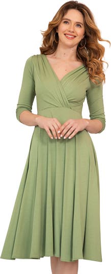 Designed to flatter at the waist with a gathered crossover-neckline and fit-and-flare skirt in soft-stretch jersey, our Annie Dress is a versatile essential for every wardrobe. 3/4 length sleeves provide extra arm coverage to this midi dress.