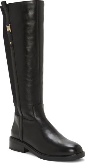 Polished hardware at the topline and a low block heel add hints of equestrian style to this refined leather boot.
