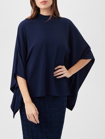 Oversized mock neck blouse with wide sleeves and a back keyhole