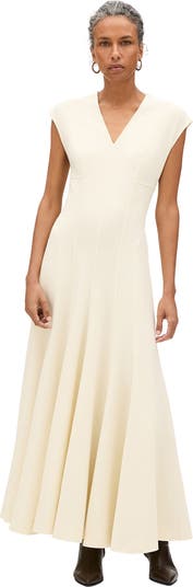 Designed in double face wool, this tea length dress offers a sophisticated fit and flare silhouette with seaming details throughout. Featuring cutouts in the back. Finished with an invisible zipper. Our family-run farm partners across Australia, New Zealand, and Uruguay compassionately raise and shear their sheep in exemplary conditions, free of the cruel practice of mulesing.