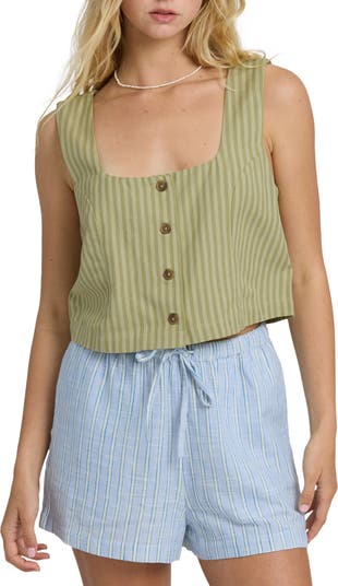 Easy and breezy, this cotton-blend tank top boasts buttons down the front and a surf-inspired wavy print on the cropped silhouette.
