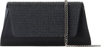 A signature trapezoidal shape—which subtly references the 'A' in Akris—defines this crystal-embellished envelope clutch that's made in a tonal mix of silk satin and calfskin leather. An attachable chain strap gives you a hands-free carrying option.