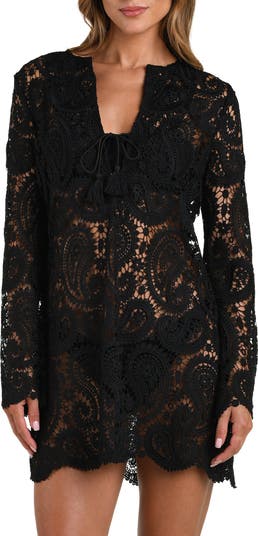 This beautiful open-knit dress with long sleeves looks great as you scroll the boardwalk after a swim.