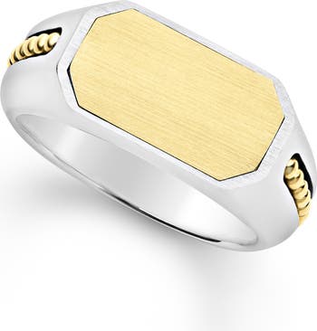 Signature Caviar beading flanks the sides of this sterling silver signet ring accented with a satin-finish 18-karat gold face.