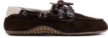 The Antibes Mocha is a P448 sacchetto-designed boat shoe that uses a handmade process to bring you ultimate comfort and sleek style. Smooth all-over brown suede is complemented by brown leather trims and an off-white leather heel tab, with brown suede laces woven around the shoe. Our raised gum tread finishes off the look.