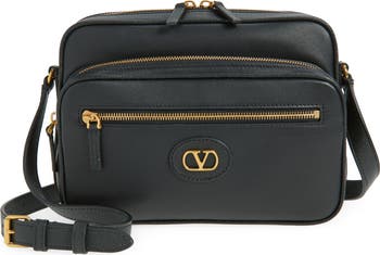 VLOGO Signature hardware and bold zips add a pop of golden contrast to this boxy calfskin bag crafted in a compact yet spacious camera-case silhouette that's a perfect blend of casual-chic and practical. The adjustable strap and external pockets make it ideal for everyday, hands-free wear with a focus on functionality.