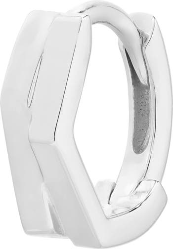 This single huggie hoop earring is composed of two rows of 18-karat gold, handcrafted using the technique of lost-wax casting, in a minimalist and architectural design inspired by the shape of the cliffs of Antifer in Normandy.