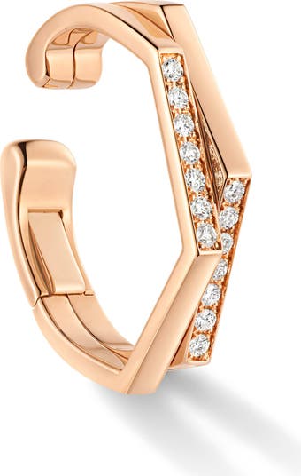 Handcrafted using the technique of lost-wax casting, this two-row ear cuff features an architectural design that blends soft curves and sharp angles, inspired by the shape of the cliffs of Antifer in Normandy. Sparkling pavé diamonds polish it off with an icy finish.