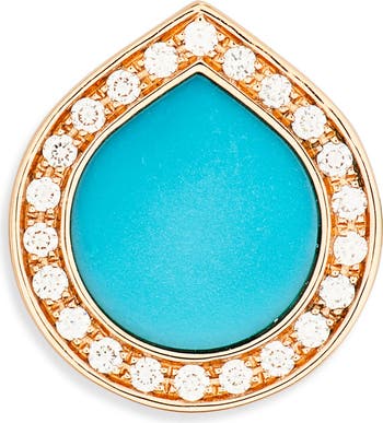 This single stud earring is handcrafted from 18-karat rose gold using the technique of lost-wax casting, with sparkling diamond pavé haloing the gorgeous turquoise stone. It features a minimalist and architectural design that juxtaposes a round curve and a sharp peak, achieving a perfect harmony of form.