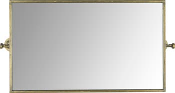 This antique gold metal rectangle wall mirror adds style and depth to any living space. This artfully crafted mirror features a modern metal frame and industrial wall brackets in an antique gold finish, creating a stunning visual effect. The mirror is made of metal, glass, and reclaimed wood for a durable and stylish look. The mirror has hanging mechanisms for easy installation and can be hung horizontally or vertically. This mirror is perfect for adding a touch of glamour and sophistication to any living room, bedroom, or hallway. It measures 14 inches wide by 27.75 inches high, making it a perfect size for any space. This mirror is a stunning piece that will add a touch of sophistication to any home.